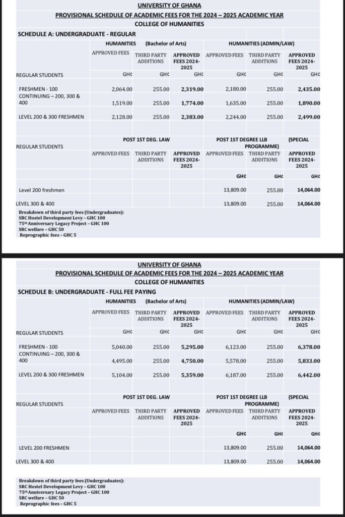 Continuing students in the same college will also feel the pinch, with fees escalating by 27% from GH¢1,777 to GH¢2,253.