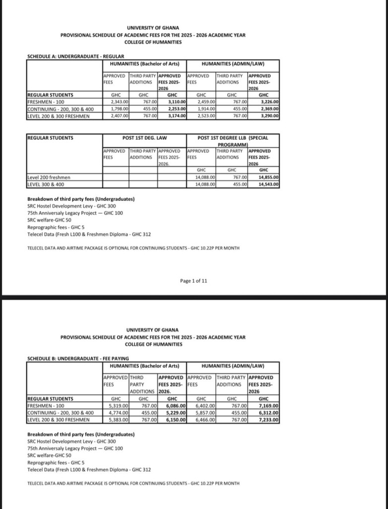 For instance, Level 100 freshmen are set to pay an eye-watering GH¢3,110, representing a 34% spike from last year’s GH¢2,319.